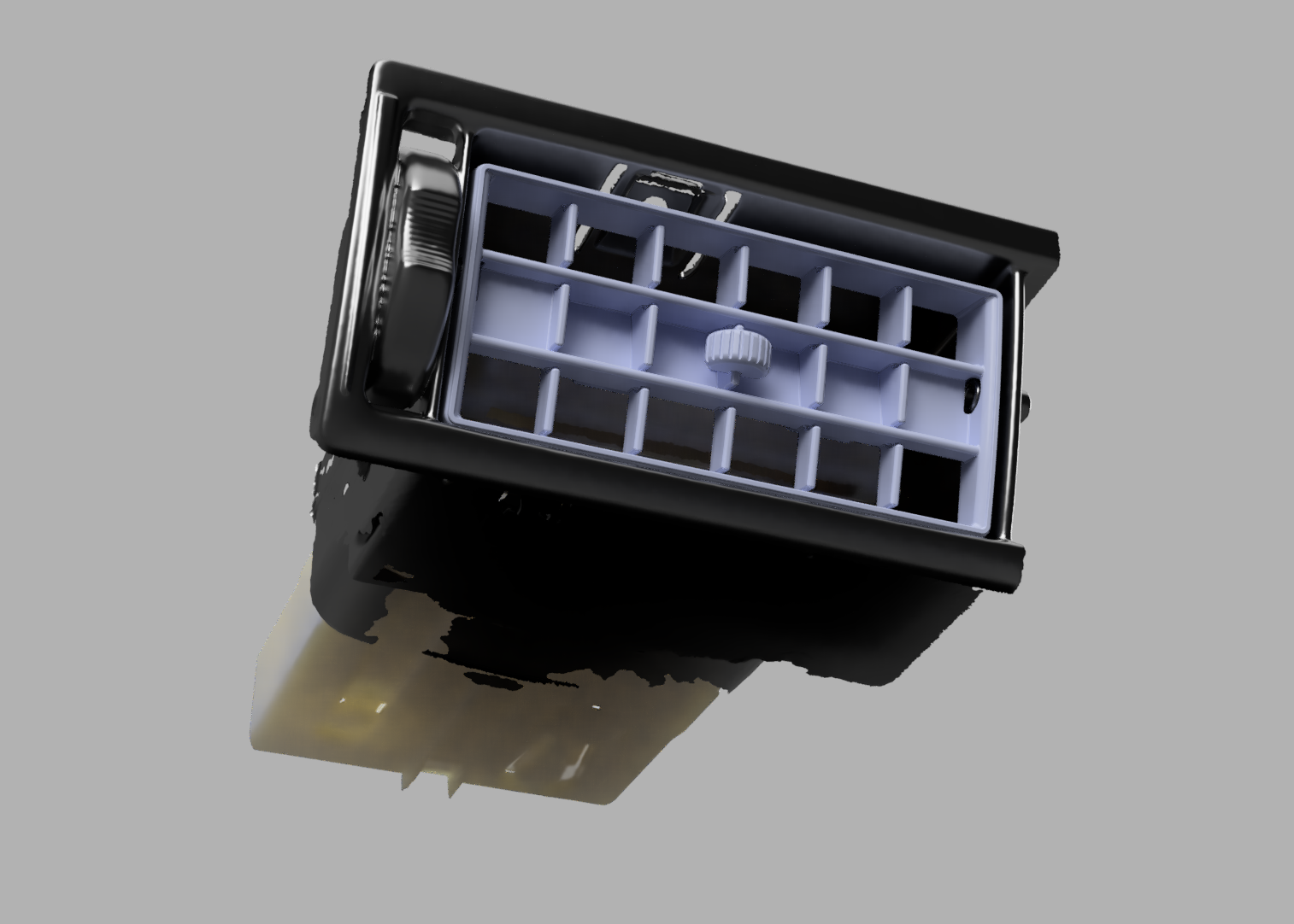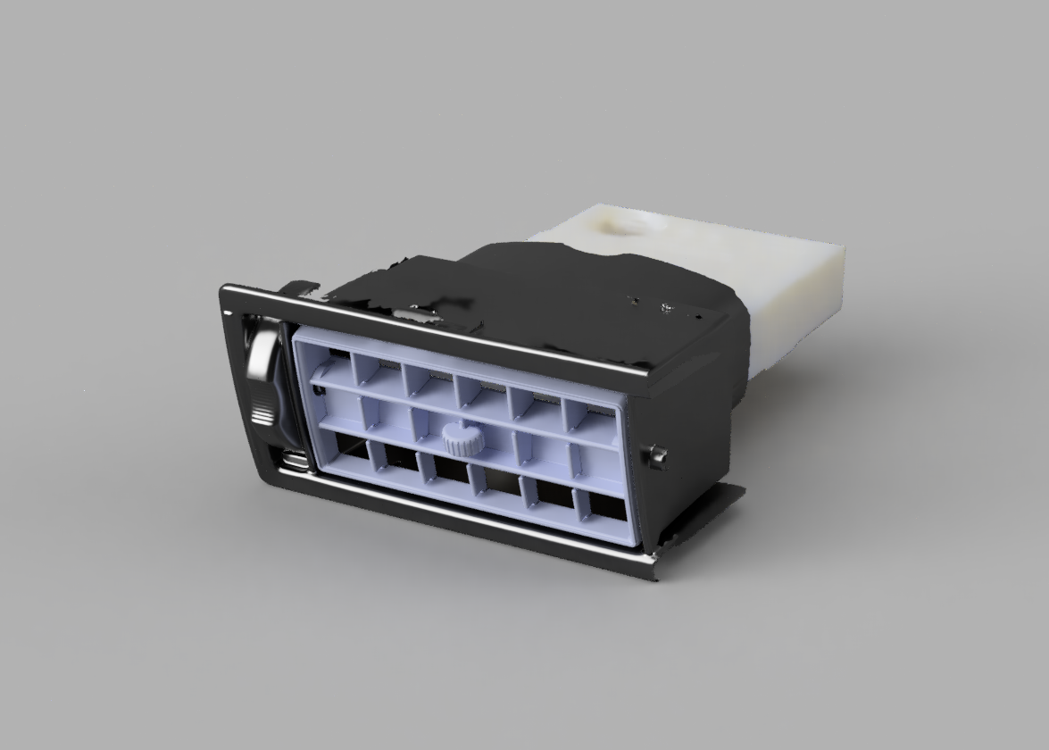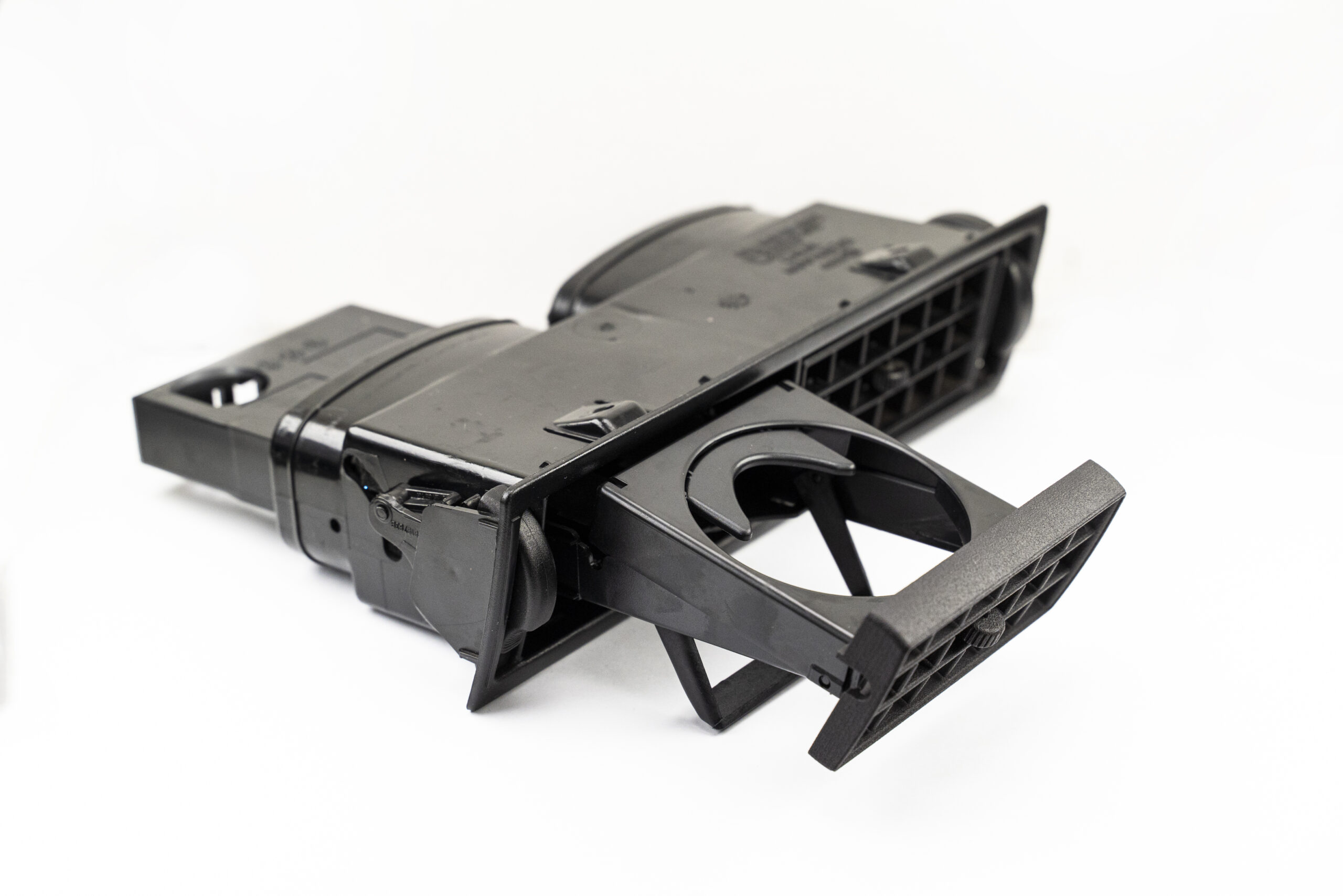 Kui disain sai lõplikult paika, pöördusime koostööpartneri poole, kus salongis nähtav detail prinditi PA12 nailonist, kasutades MJF-tehnoloogiat. See meetod tagab oluliselt kvaliteetsema pinnaviimistluse ja tugevama struktuuri võrreldes tavapärase FDM-printimisega, mis poleks võimaldanud saavutada soovitud originaalilähedast välimust.