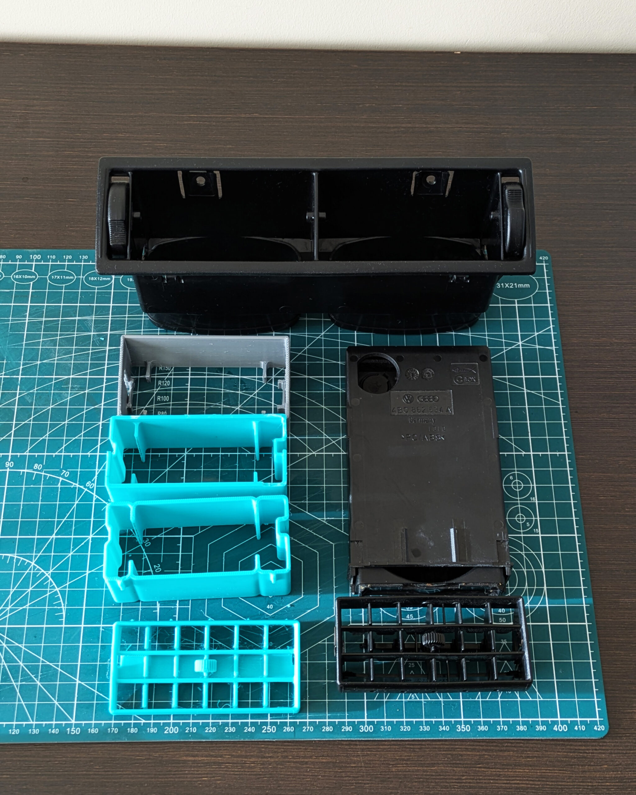 Enne lõpliku variandi kinnitamist valmistasime mitmeid 3D-prinditud prototüüpe, testides nii sobivust, mehhaanilist toimivust kui ka visuaalset kooskõla armatuurlauaga.