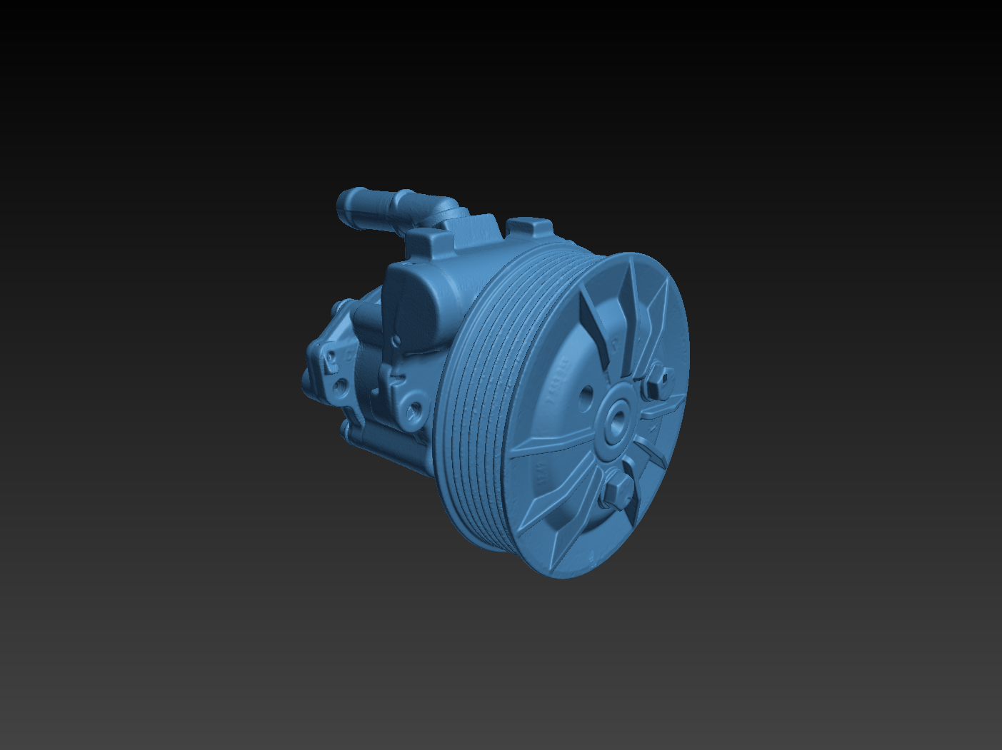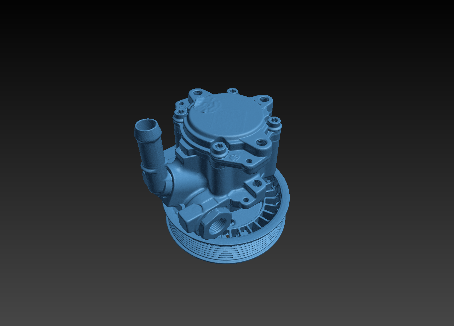 Esimese sammuna teostasime detaili 3D-skaneerimise. Selle käigus mõõdetakse füüsiline objekt suure täpsusega ning tulemuseks on digitaalne punktipilv ja pinnamudel, mis kirjeldab detaili tegelikku kuju. 3D-skaneerimine võimaldab kiiresti ja täpselt jäädvustada ka keeruka geomeetriaga detaile ilma käsitsi mõõtmata.
